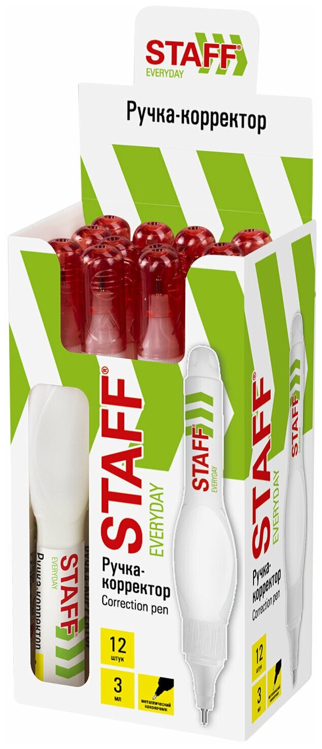 Ручка-корректор STAFF "EVERYDAY", 3 мл, металлический наконечник, 227570, 36шт в компл. интересное: