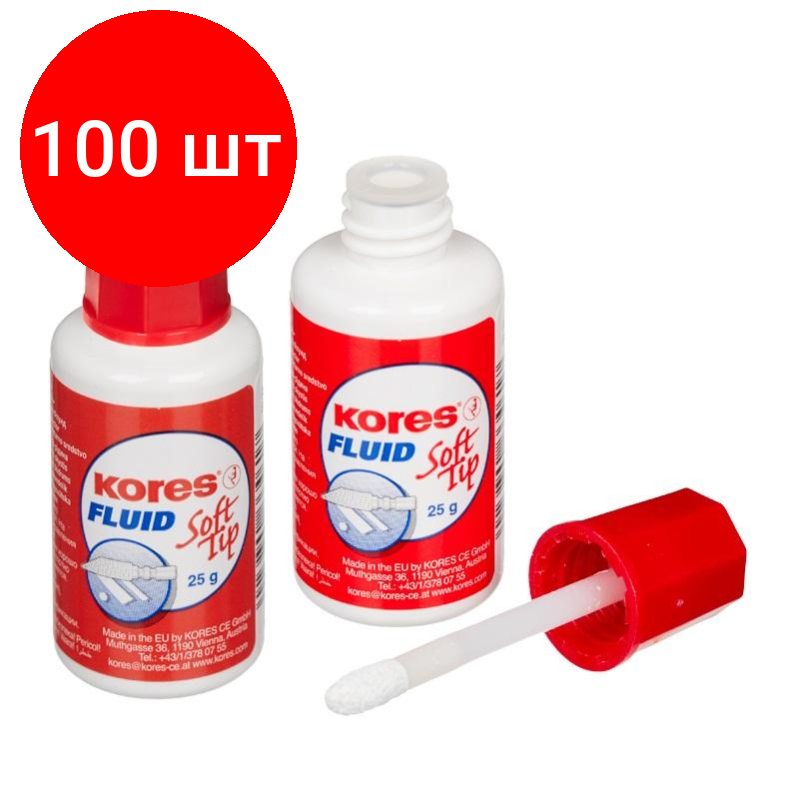 Комплект 100 штук, Корректирующая жидкость KORES Soft Tip FLUID 25мл на быстросохн осн, апплик интересное: