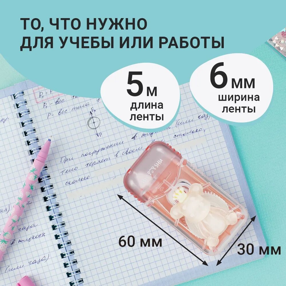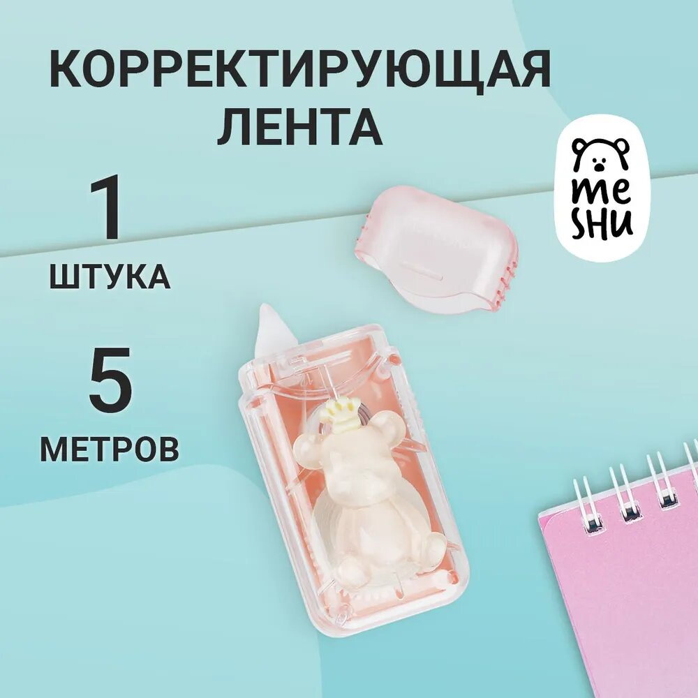 Корректирующая лента MESHU "Bear queen", 6мм*5м, блистер, европодвес, розовый интересное: