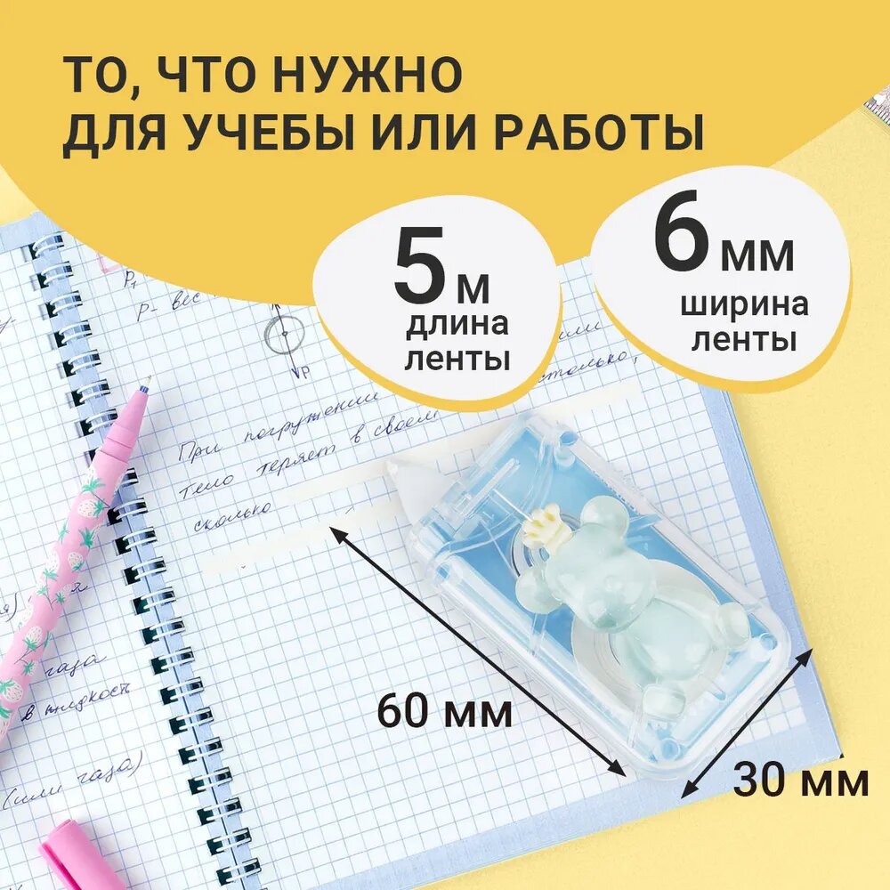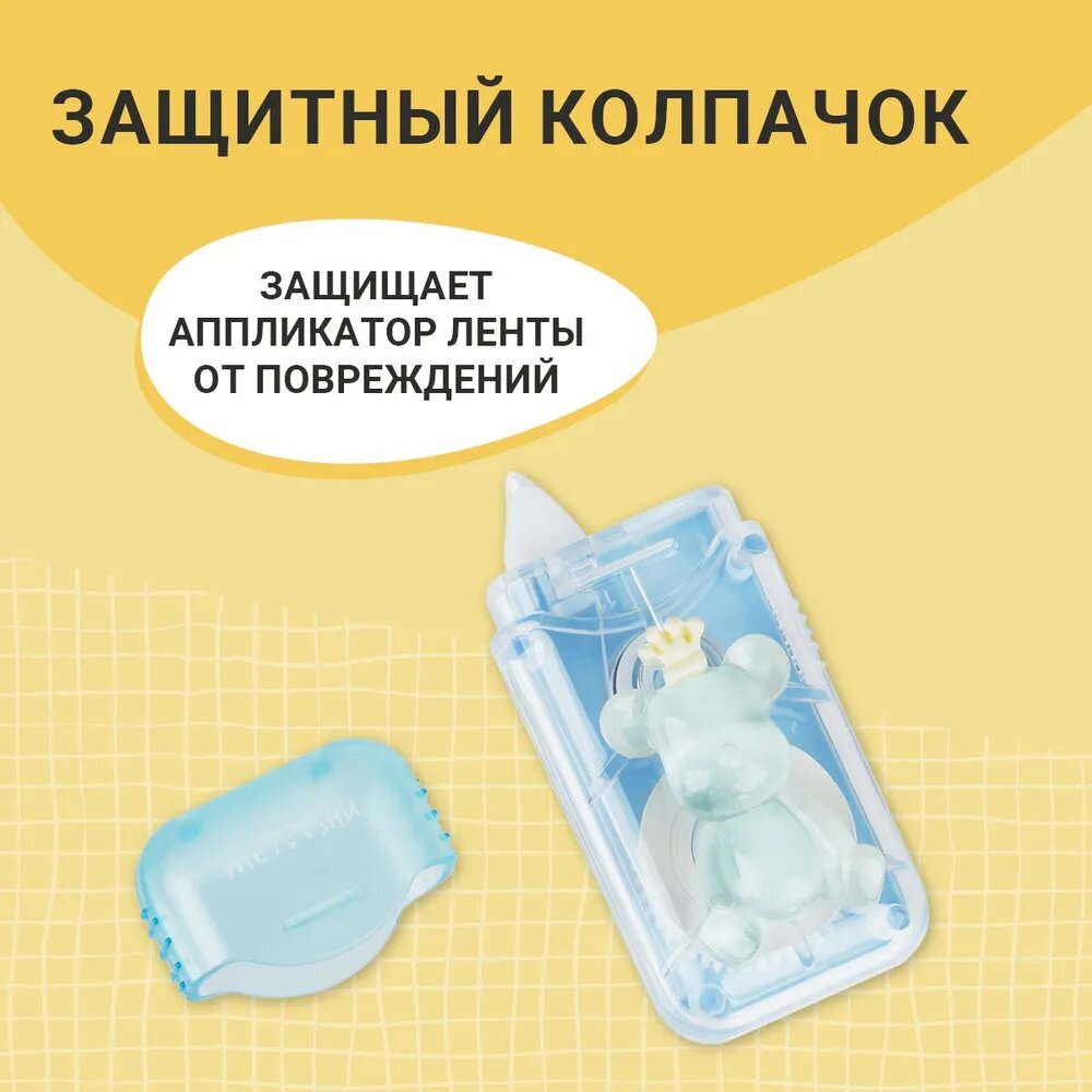 Корректирующая лента MESHU "Bear queen", 6мм*5м, блистер, европодвес, голубой интересное: