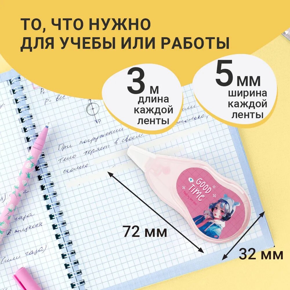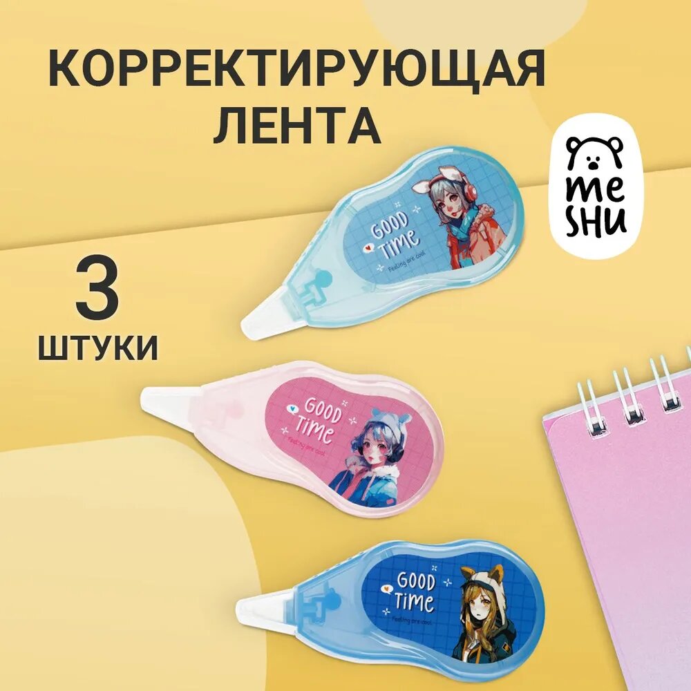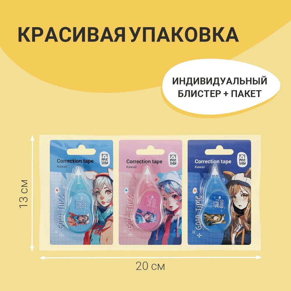 Набор корректирующих лент MESHU "Kawaii", 5мм*3м, пакет интересное: