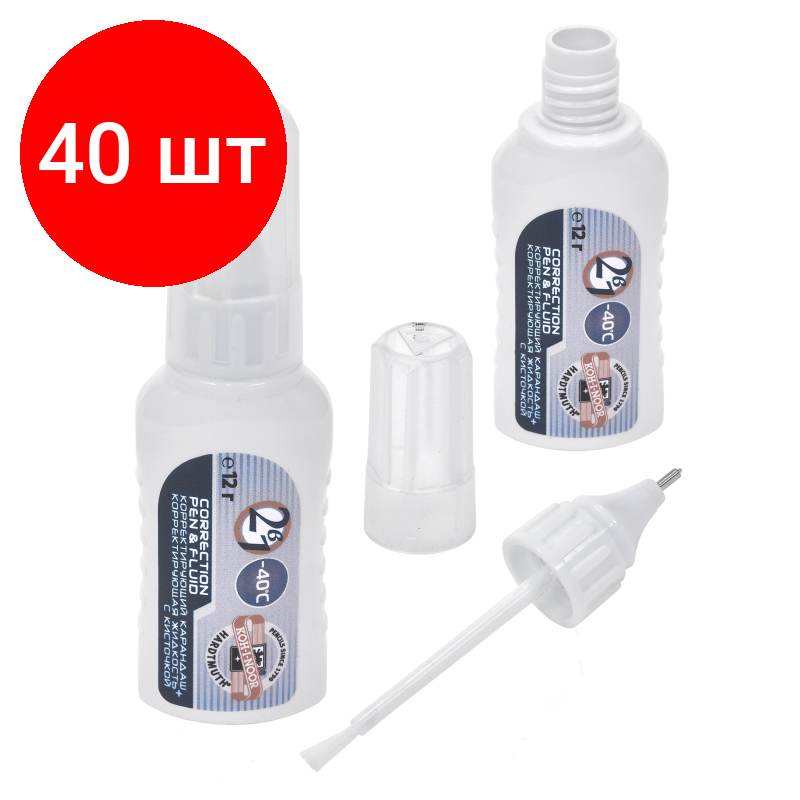 Комплект 40 штук, Корректирующий карандаш Koh-i-Noor 12мл 737519К 2в1 кисточка+метал. наконеч интересное: