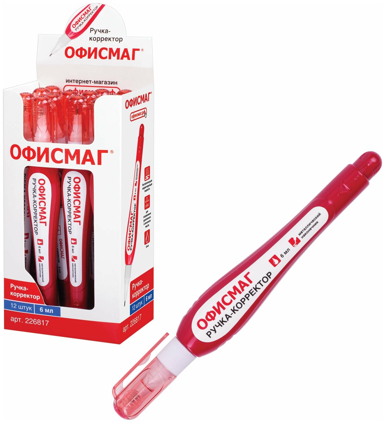 Ручка-корректор офисмаг, 6 мл, металлический наконечник, 226817, 12шт в компл. интересное: