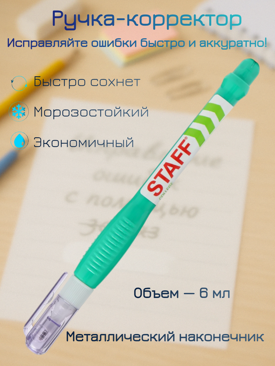 Ручка-корректор "STAFF", металлический наконечник, 6мл, бирюзовая интересное: