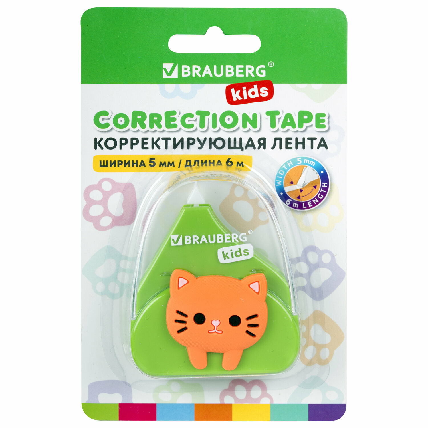 Купить Корректирующая лента BRAUBERG KIDS "Котенок", 5 мм х 6 м, корпус ассорти, блистер, 272494