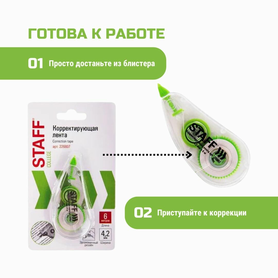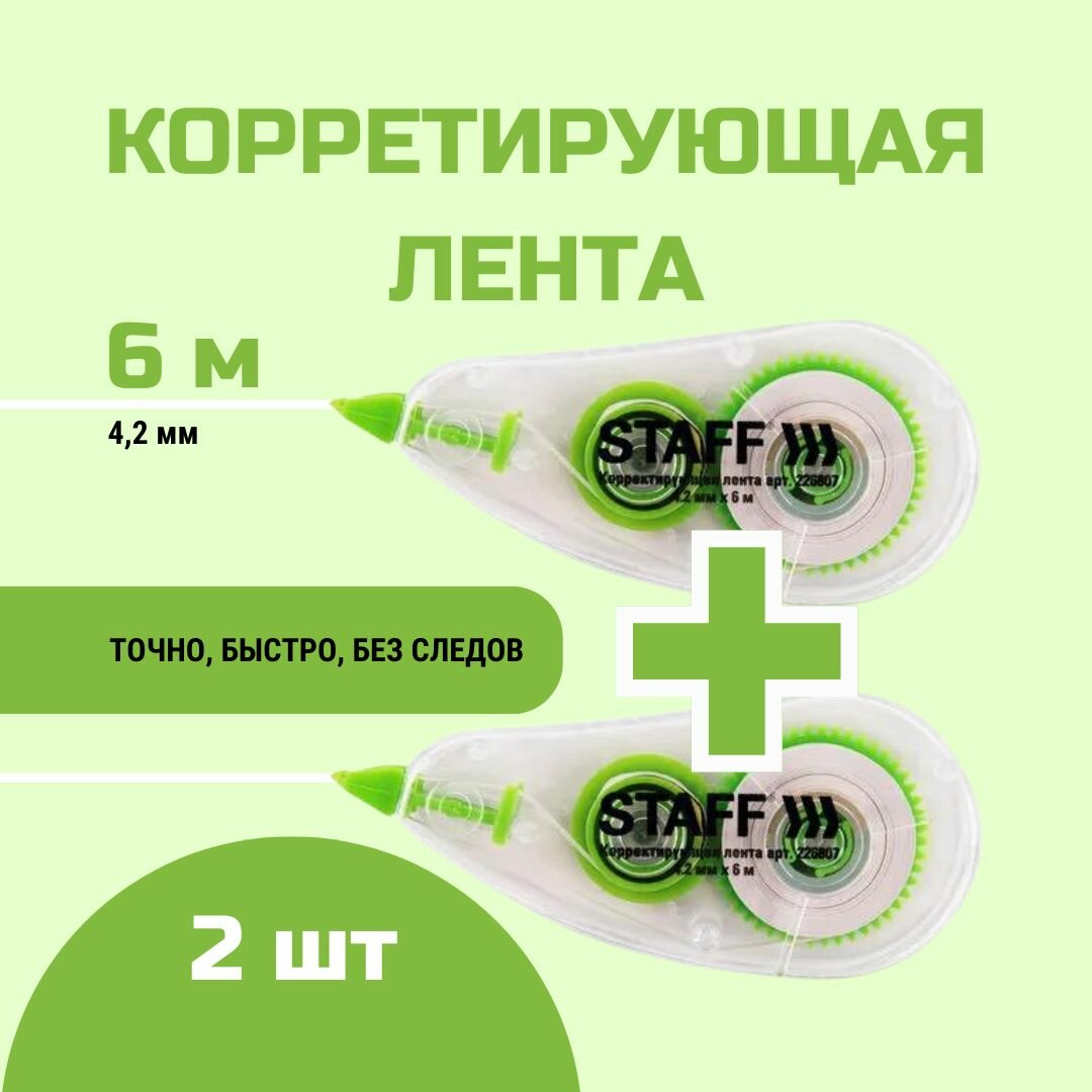 Корректирующая лента STAFF College 4,2 мм на 6 м в блистере 2 штуки интересное: