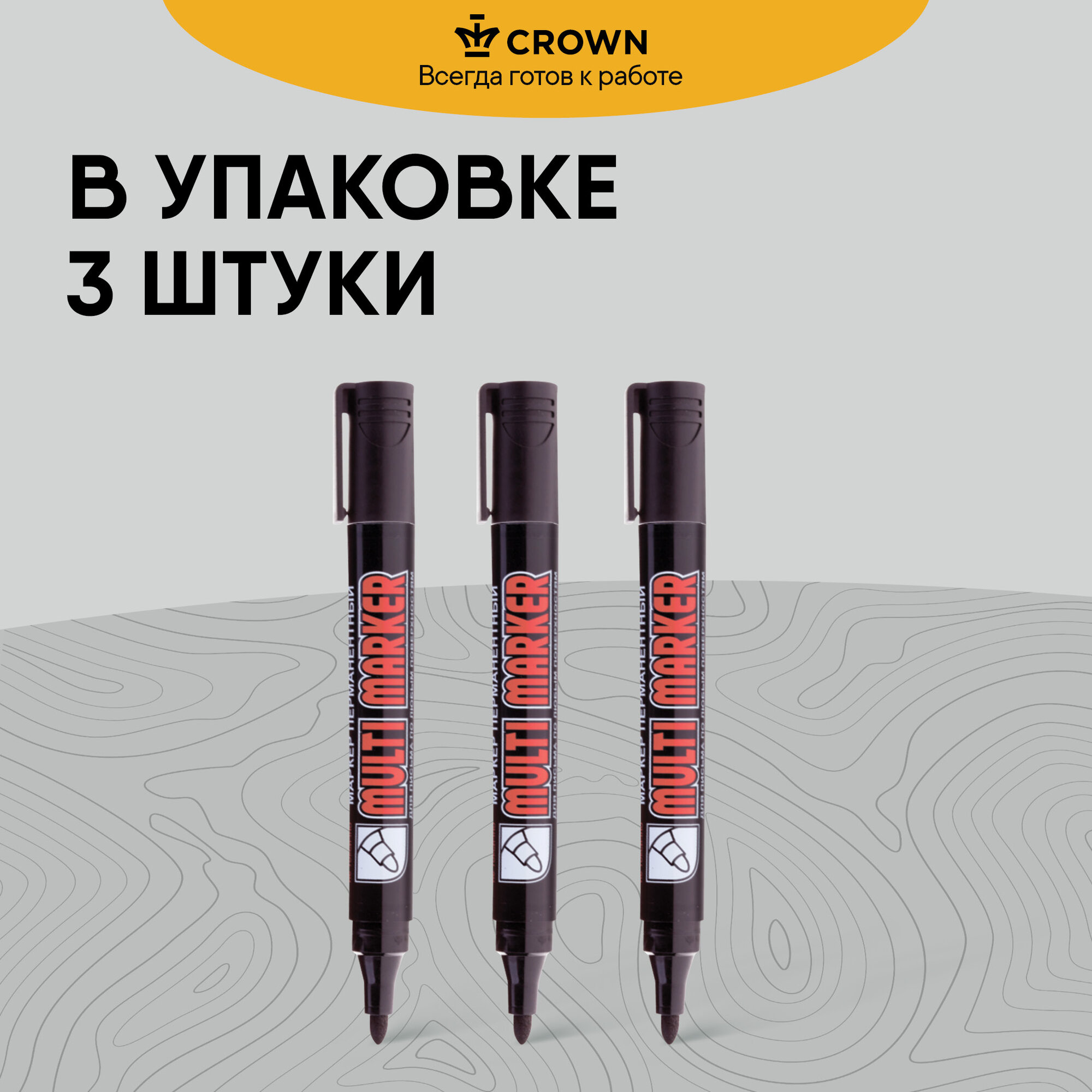 Маркер перманентный Crown "Multi Marker" черный, пулевидный, 3мм, набор 3шт, европодвес интересное: