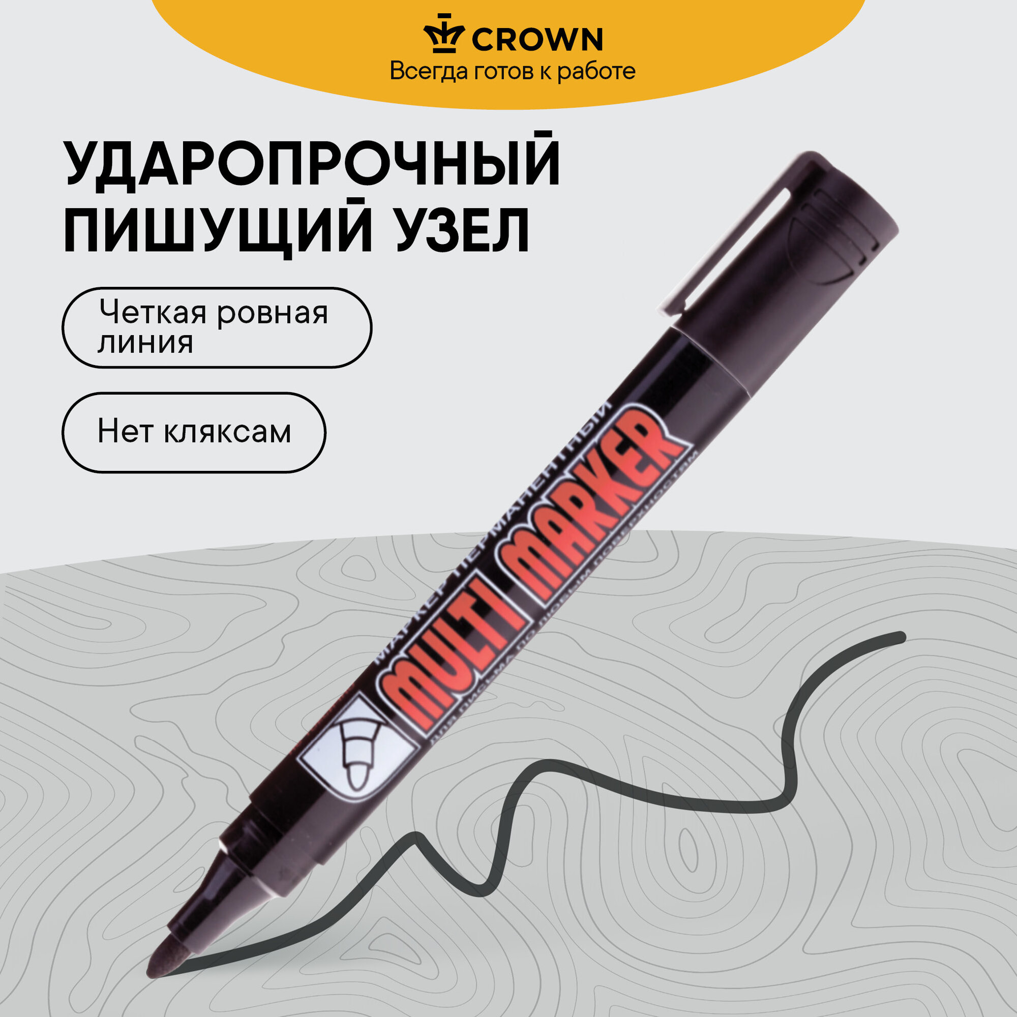 Маркер перманентный Crown "Multi Marker Super Slim" черный, 1мм, упаковка 12 шт.