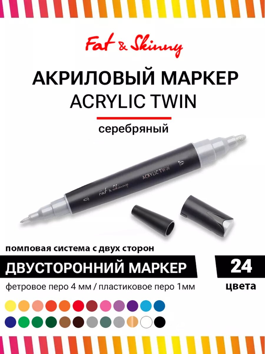 Акриловый двусторонний маркер Fat&Skinny Acrylic Twin серебро интересное: