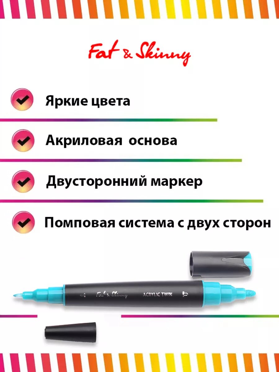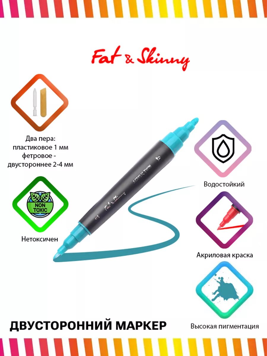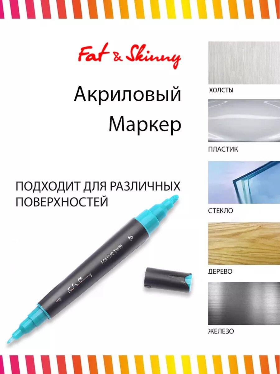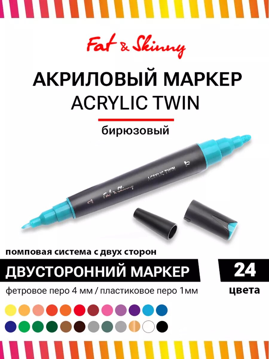 Акриловый двусторонний маркер Fat&Skinny Acrylic Twin Viridian Green бирюзовый интересное: