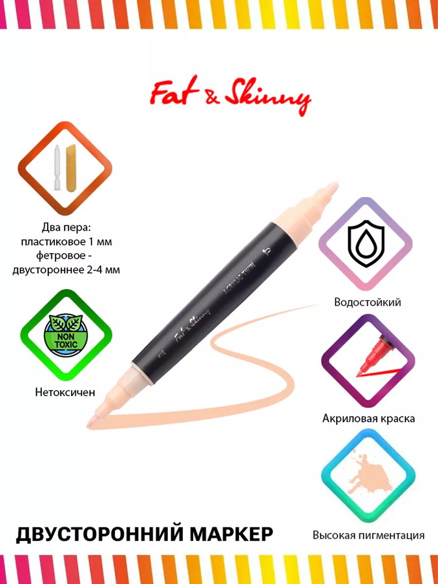 Акриловый двусторонний маркер Fat&Skinny Acrylic Twin Light Apricot бежевый светлый интересное: