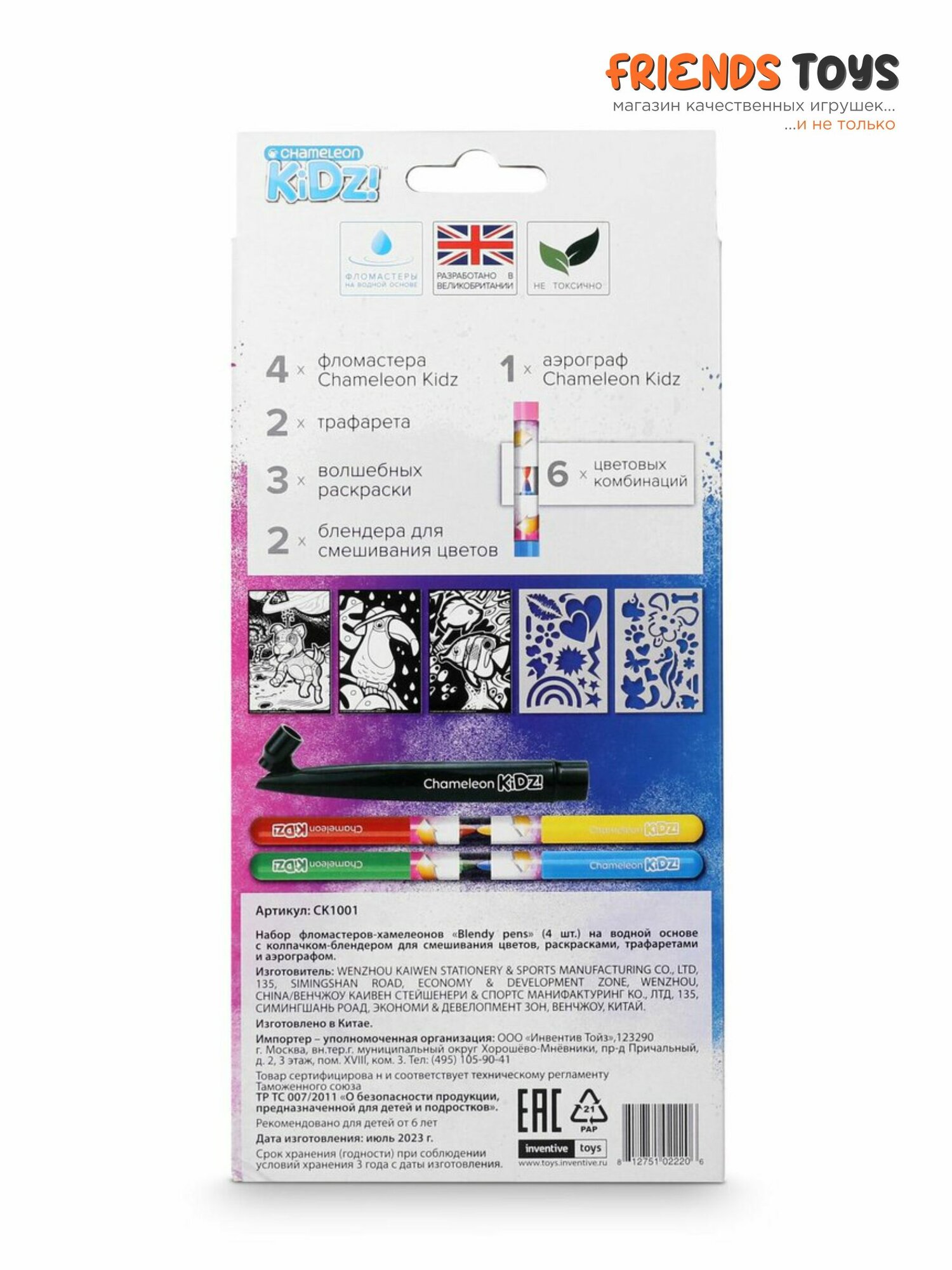 Набор фломастеров-хамелеонов Blendy pens (4 шт.) c раскрасками, трафаретами и аэрографом интересное: