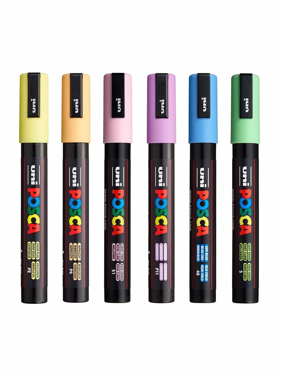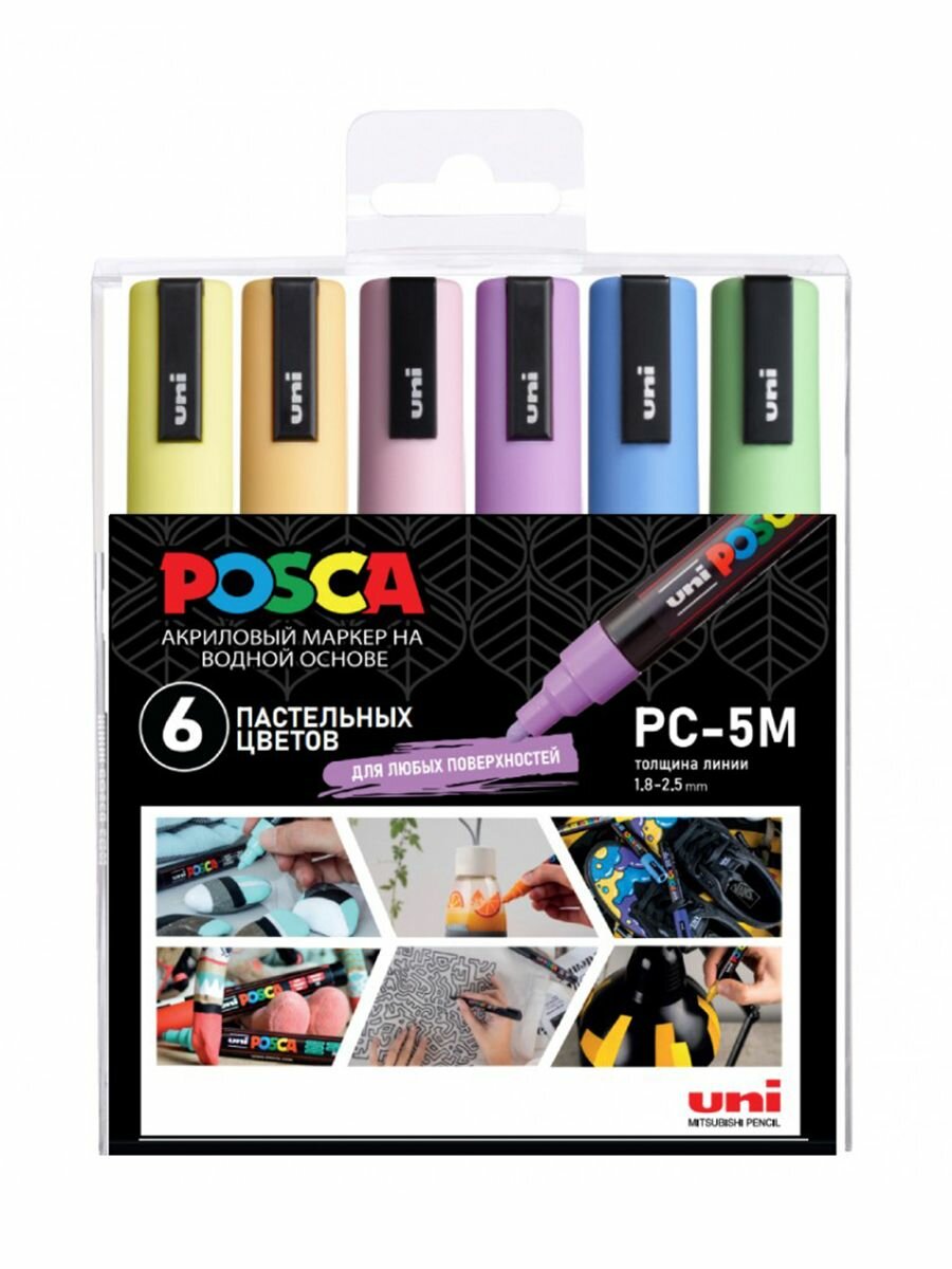 Купить Набор маркеров POSCA PC-5M, 6 пастельных цветов, толщина линии 1,8-2,5 мм, для рисования