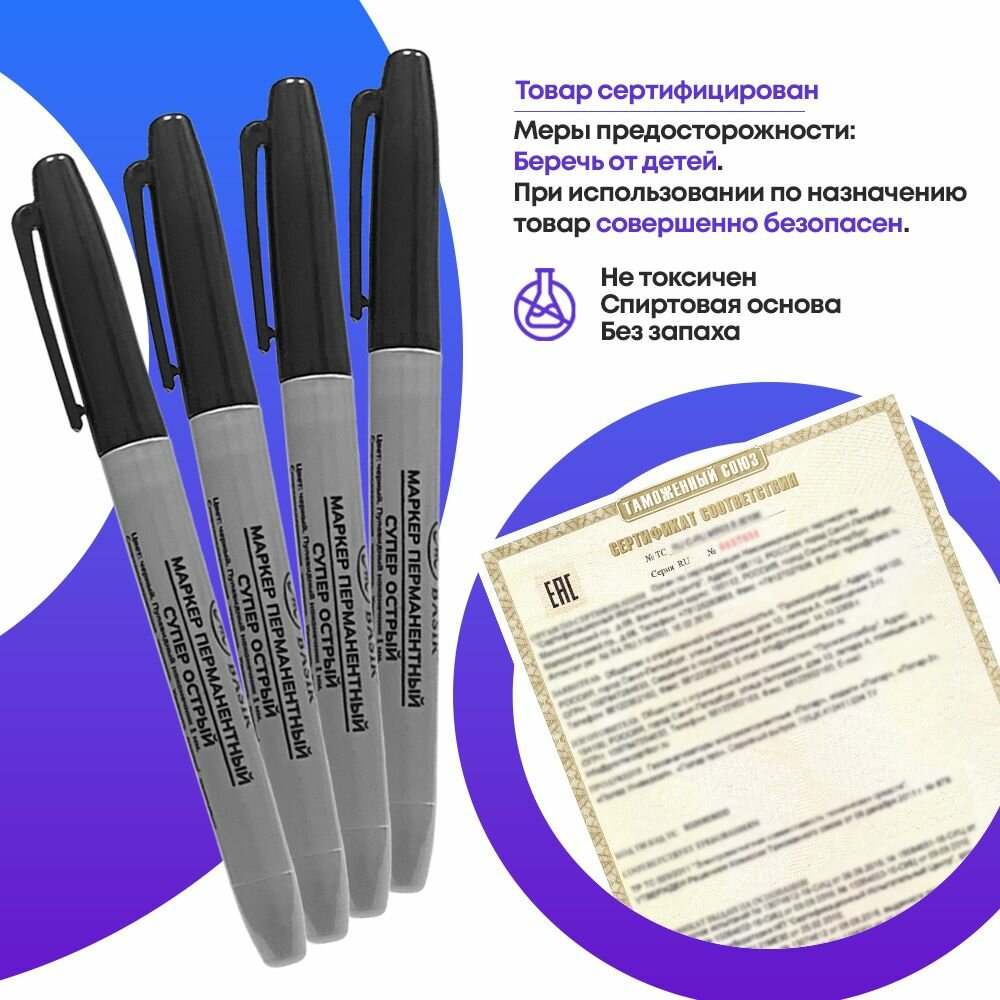 Перманентный маркер черный 24 шт