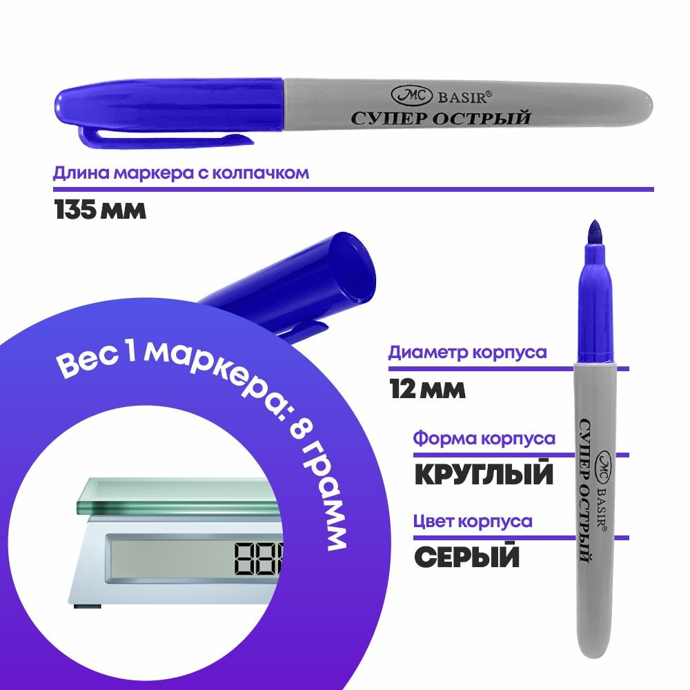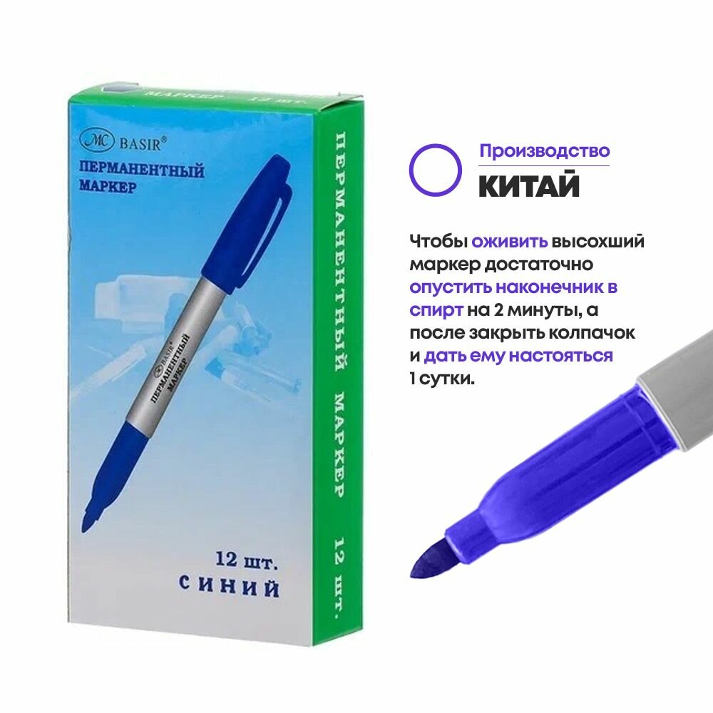 Перманентные маркеры MC-Basir 12шт, синие, несмываемые, 3 мм