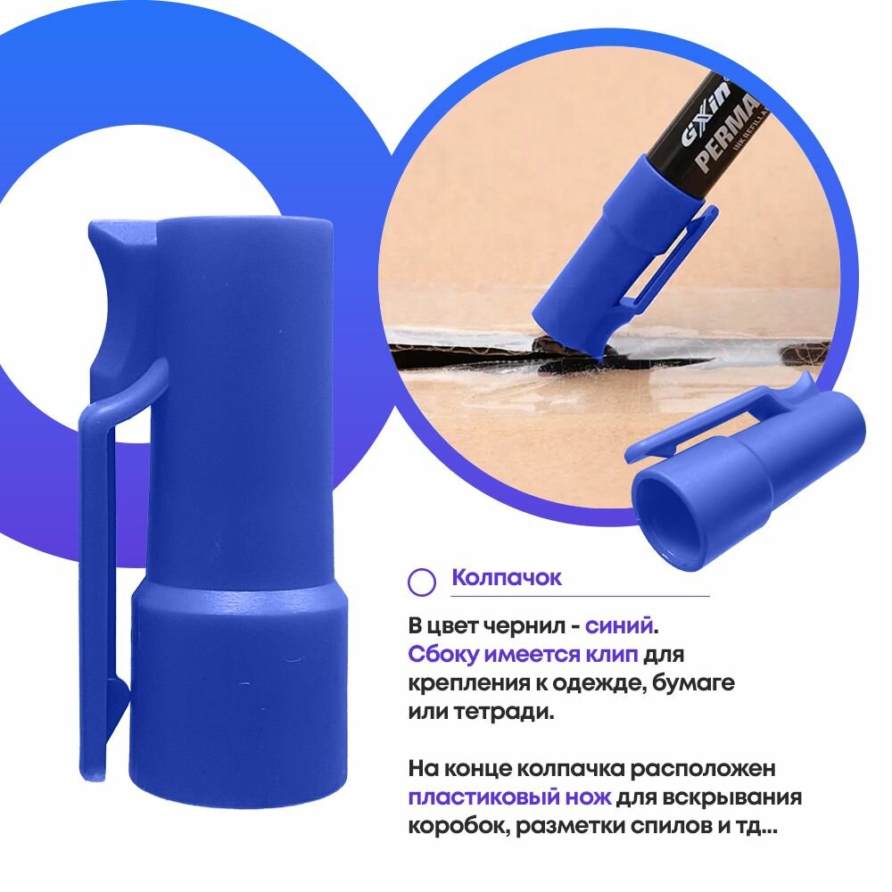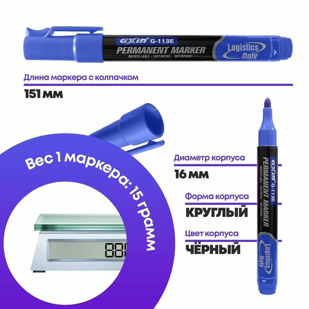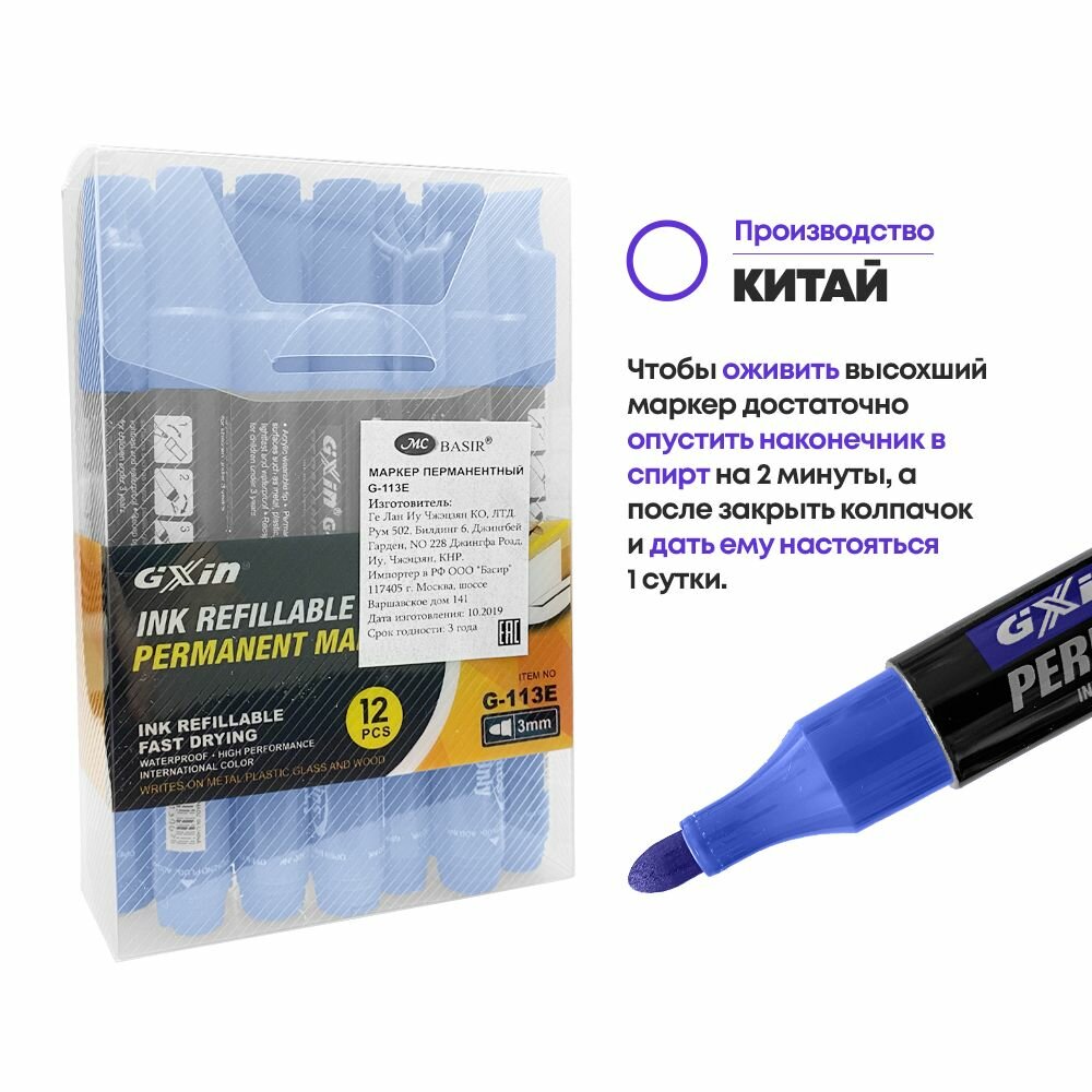 Перманентные маркеры MC-Basir 12шт, синие, несмываемые, 3 мм