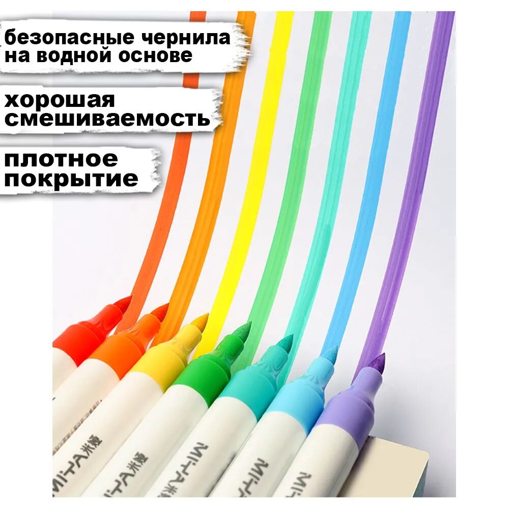 Акриловые маркеры HIMI MIYA для рисования двусторонние, 24 цвета FC. MKB. BX.006 интересное: