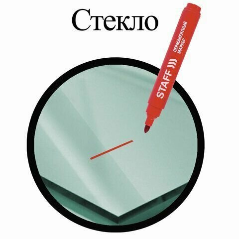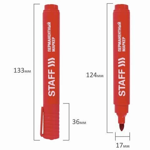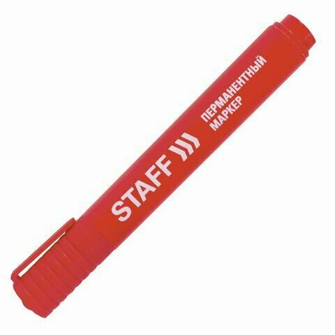 Купить Маркер красный 1 штука STAFF перманентный (нестираемый), круглый наконечник 2,5 мм, Basic PM-733, 150734