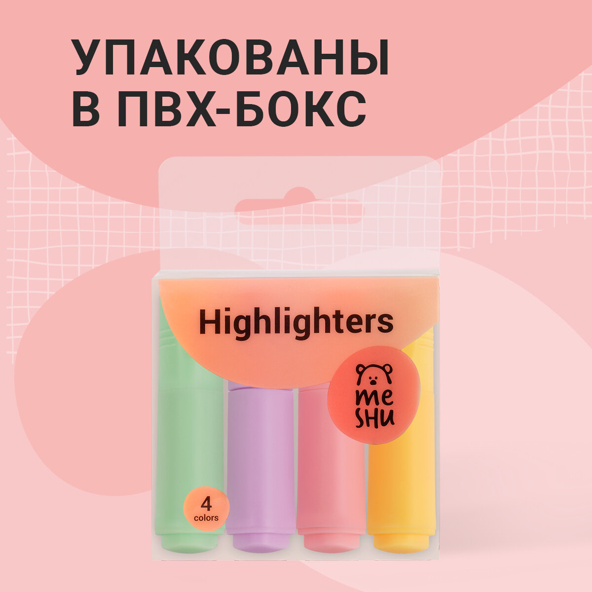Купить Набор текстовыделителей MESHU "Pomadka", 4 цв, 1-3мм, мини, скошенный, трехгранный