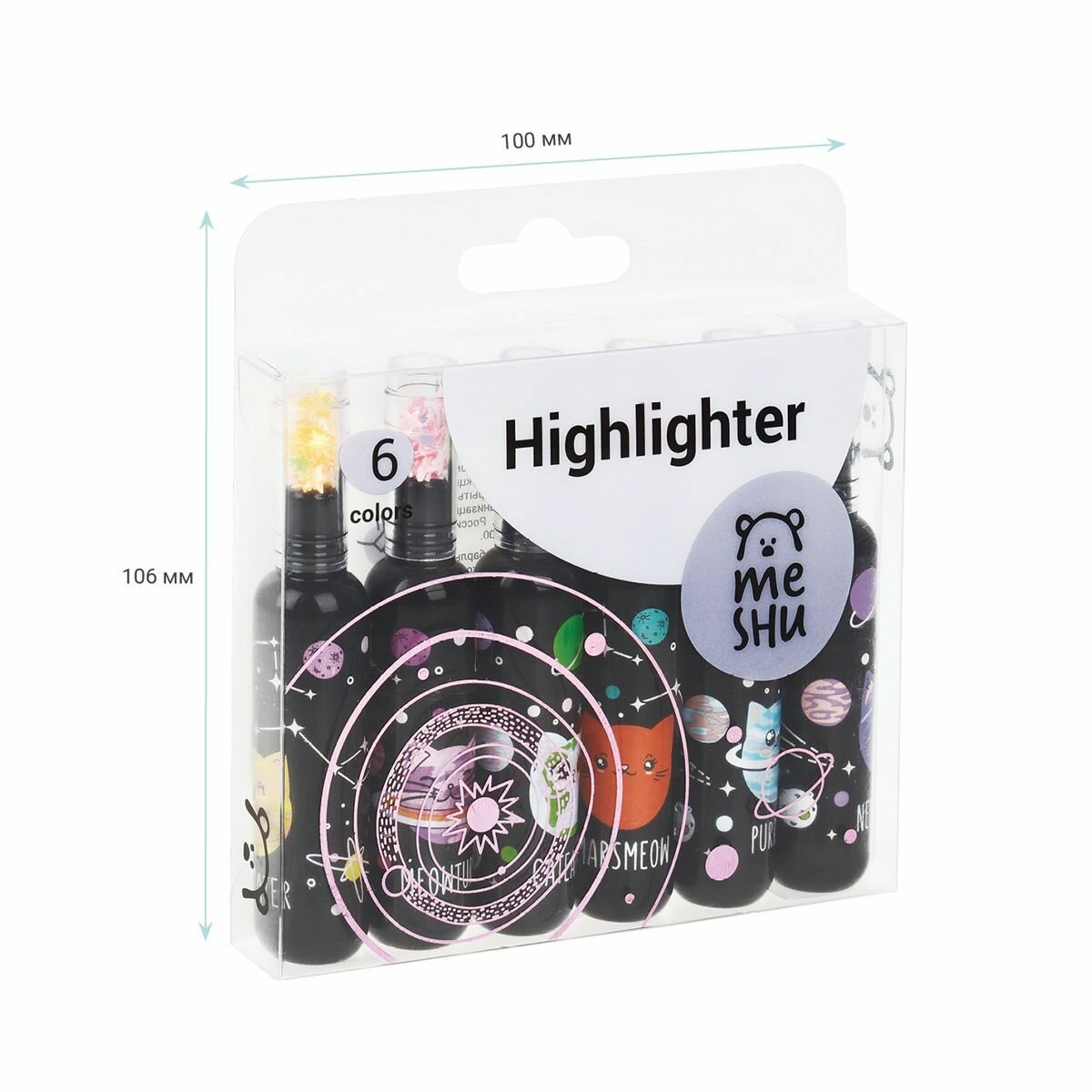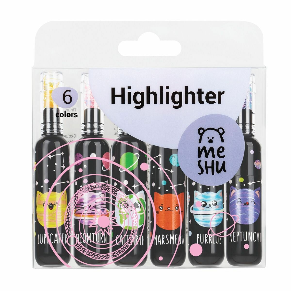 Купить Набор текстовыделителей MESHU "Meowspace" 06цв, неоновые цвета, 1-5мм, ПВХ бокс с европодвесом