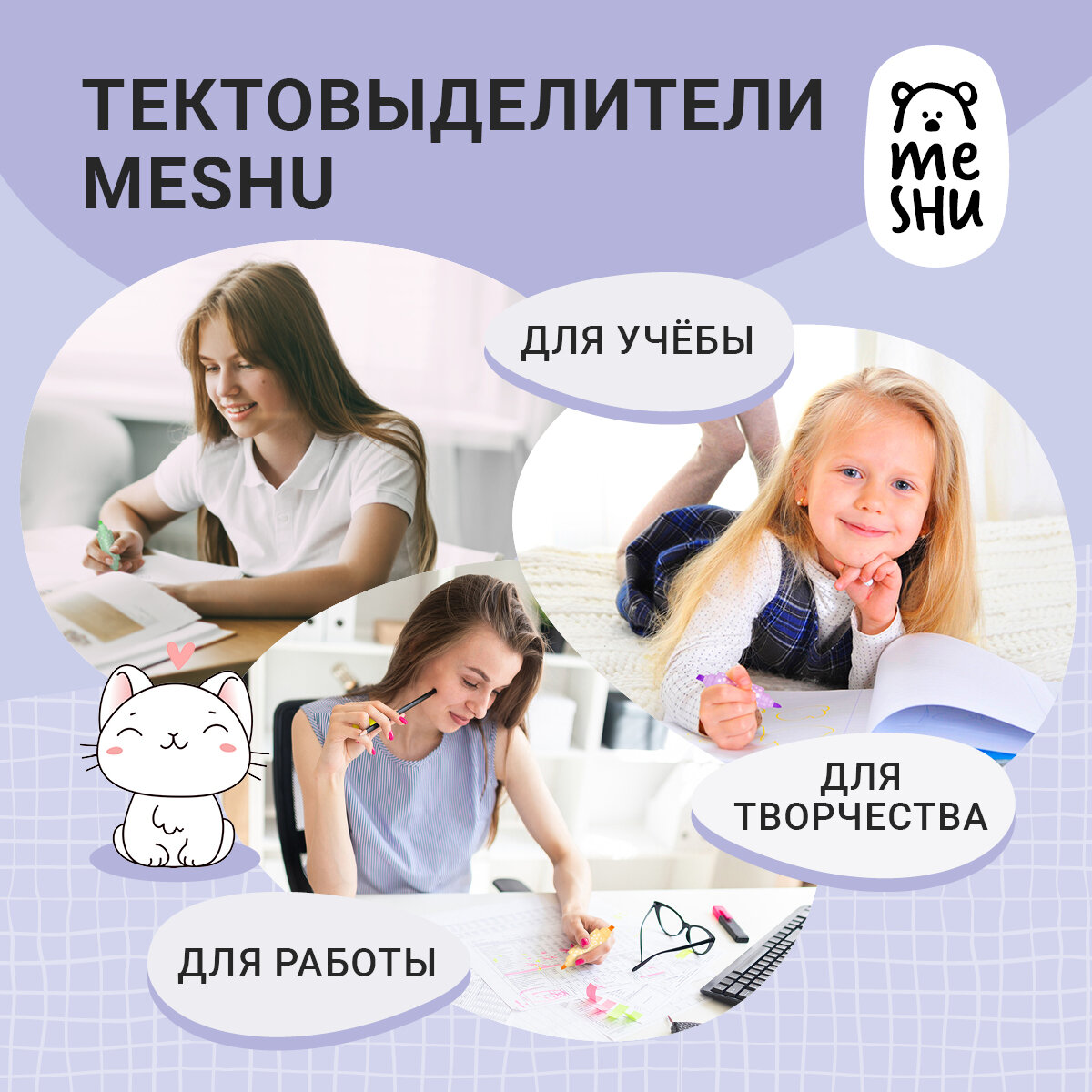 Набор текстовыделителей MESHU "Meowspace" 06цв, неоновые цвета, 1-5мм, ПВХ бокс с европодвесом