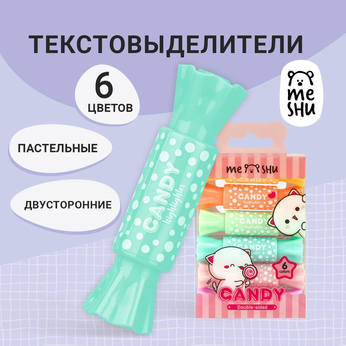 Набор текстовыделителей двусторонних MESHU "Candy", 06цв, пастельные цвета, 2/4мм, ПВХ бокс с европодвесом интересное: