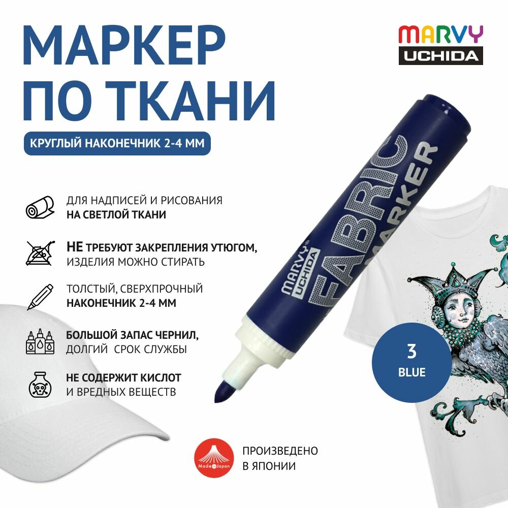 Купить Маркер круглый (2-4 мм) Marvy Uchida для светлой ткани перманентный для рисования и декора синий Blue MAR622/3