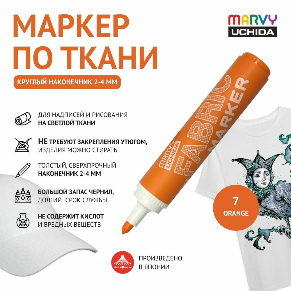 Купить Маркер круглый (2-4 мм) Marvy Uchida для светлой ткани перманентный для рисования и декора оранжевый Orange MAR622/7