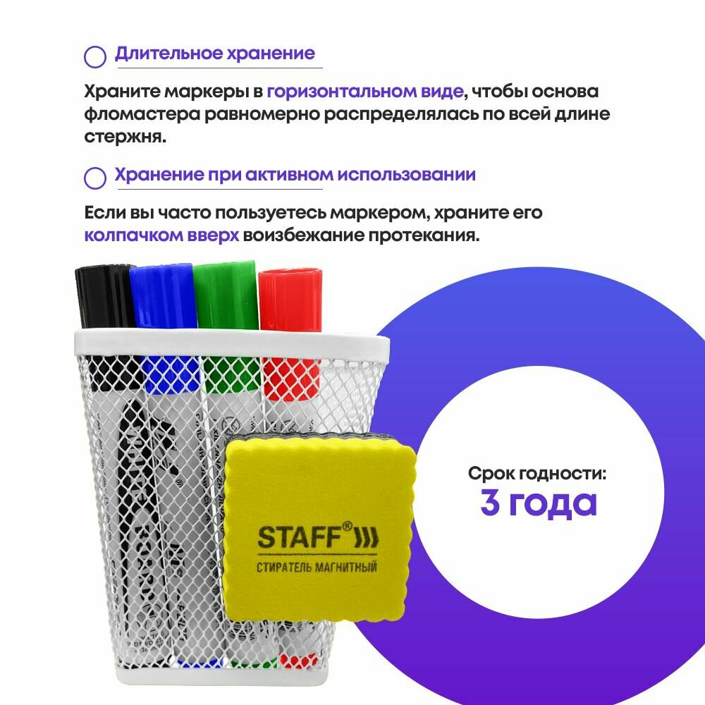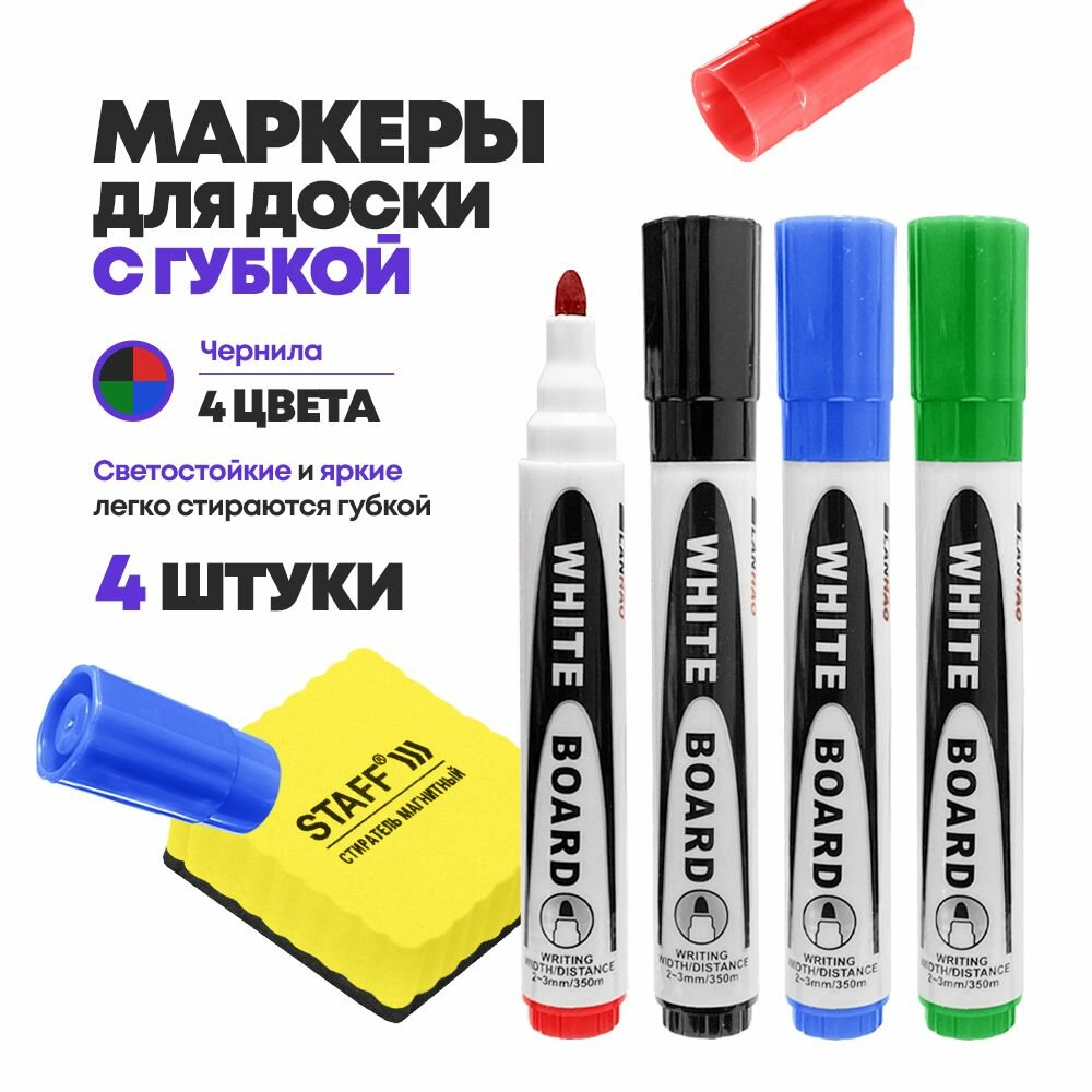 Набор маркеров MC-Basir, стираемые, для магнитных досок, с губками, 4 цвета интересное: