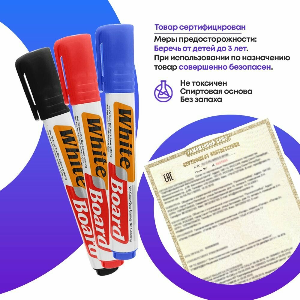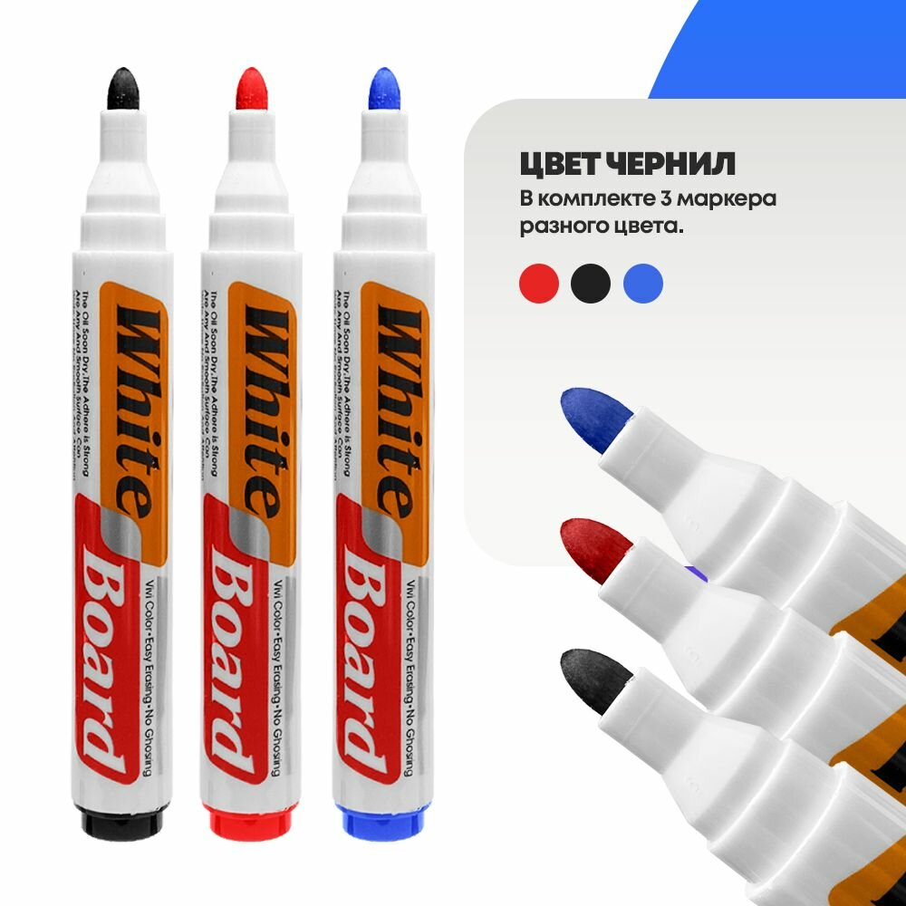 Маркеры MC-Basir MC-Basir для белой магнитной доски, набор из 3 стираемых маркеров, 3 цвета, 18мм интересное: