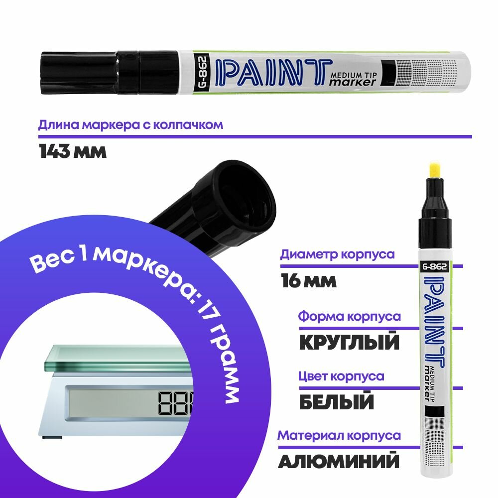 Маркер-краска MC-Basir Gixin, быстросохнущие, лаковые, водостойкие, для металла, пластика, стекла