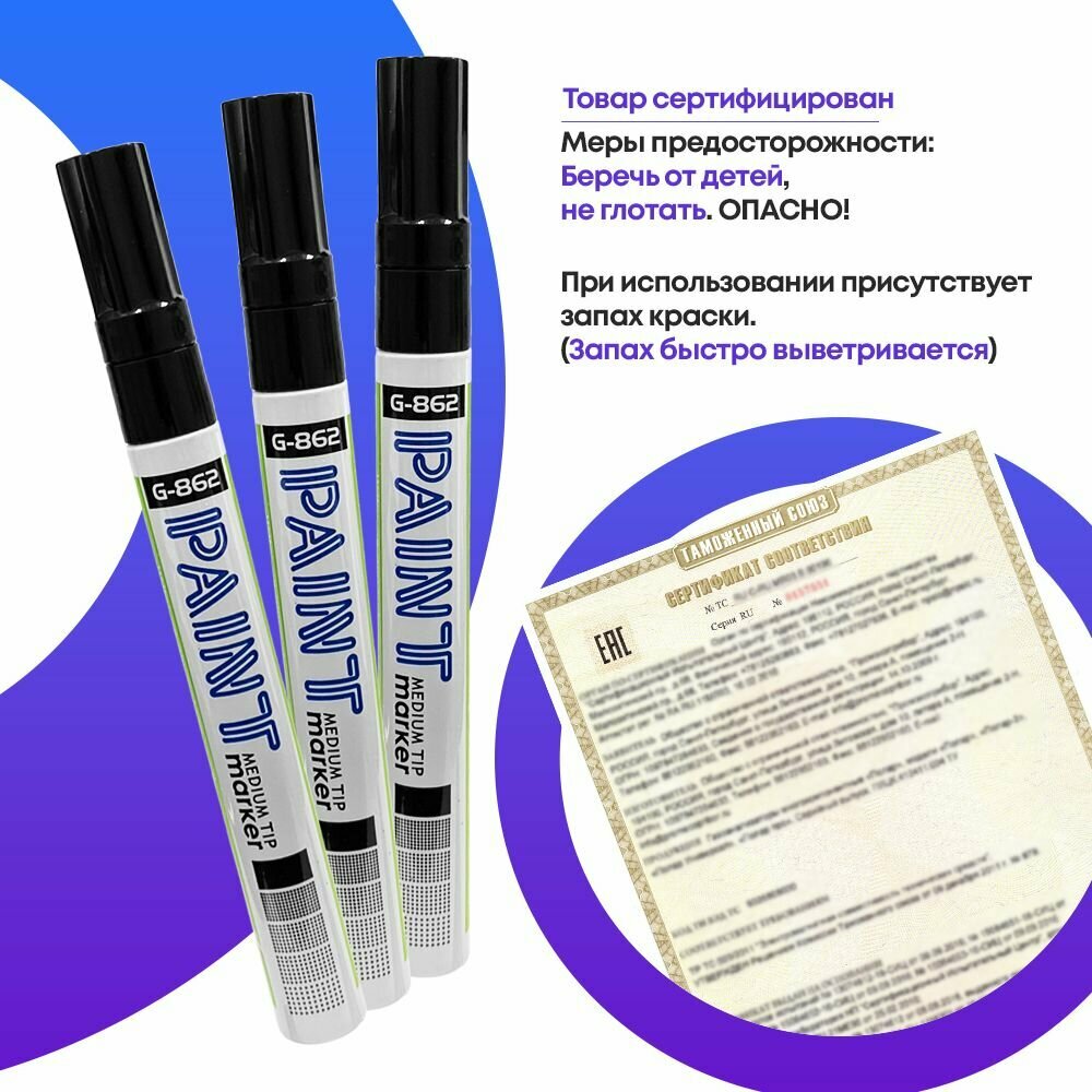 Набор маркеров MC-Basir Gixin, перманентные, лаковые, белые, 3 шт