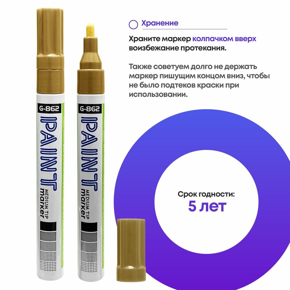 СохранитьМаркер-Краска MC-Basir Gixin, перманентный лаковый, круглый наконечник, золотой, 3 шт интересное: