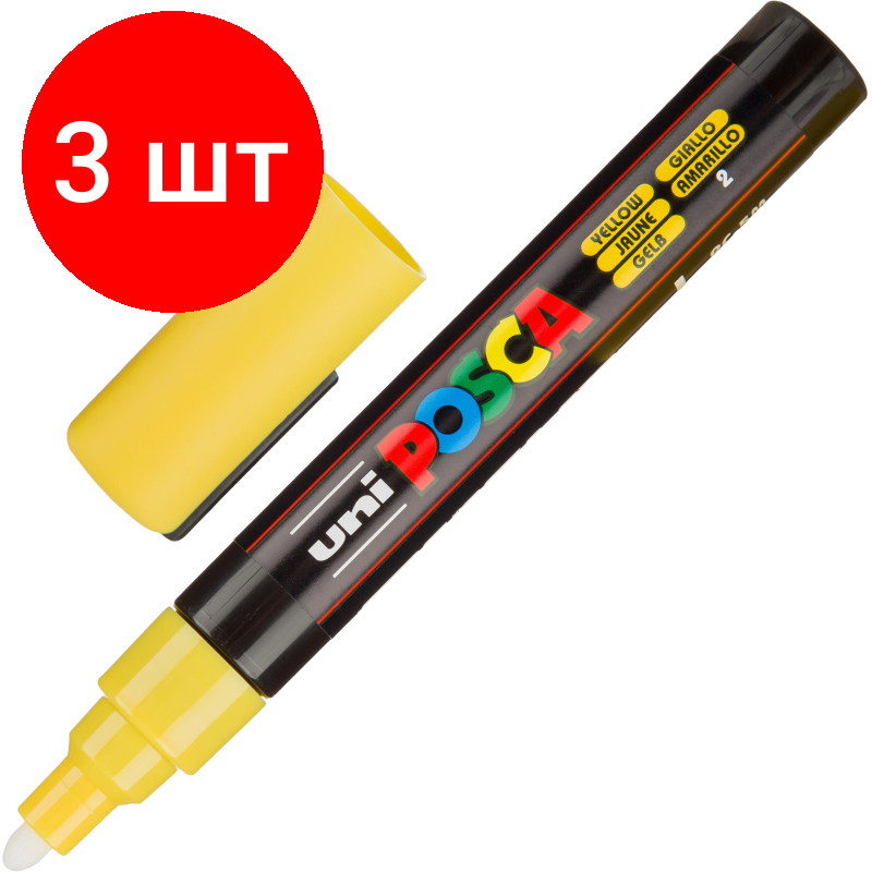Купить Маркер акриловый UNI POSCA PC-5M, соломенно-желтый, 1.8 - 2.5 мм, круглый (комплект 3 штуки)