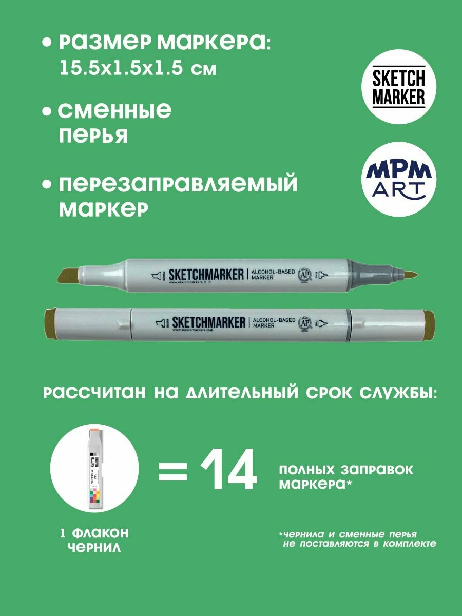 Двусторонний заправляемый маркер SKETCHMARKER на спиртовой основе для скетчинга, цвет: G161 Риф