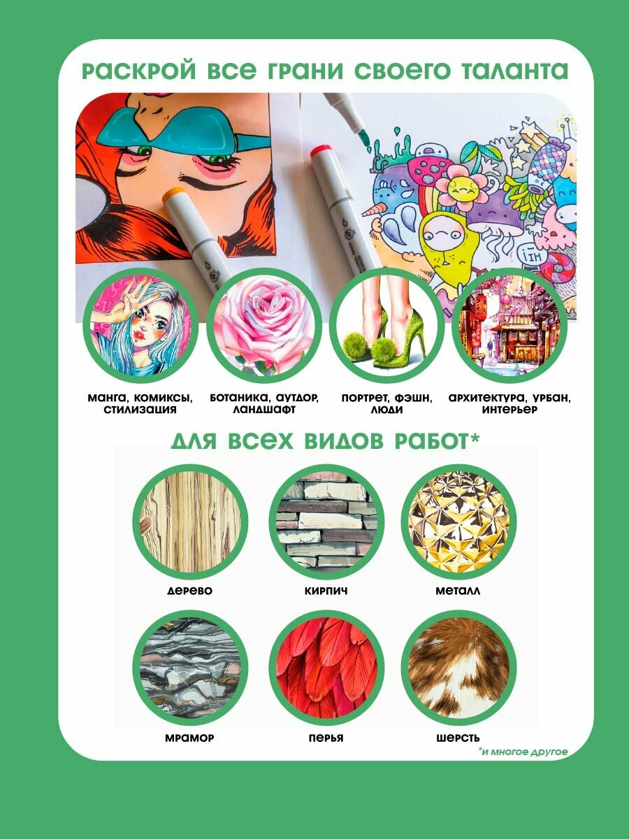 СохранитьДвусторонний заправляемый маркер SKETCHMARKER на спиртовой основе для скетчинга, цвет: G10 Крокодил интересное: