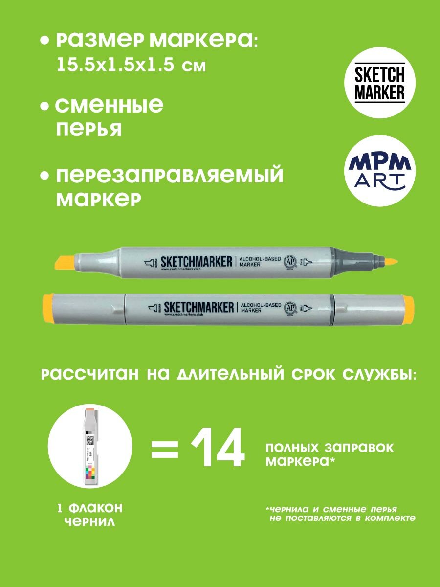 Двусторонний заправляемый маркер SKETCHMARKER на спиртовой основе для скетчинга, цвет: Y112 Зелёная краска из крушины