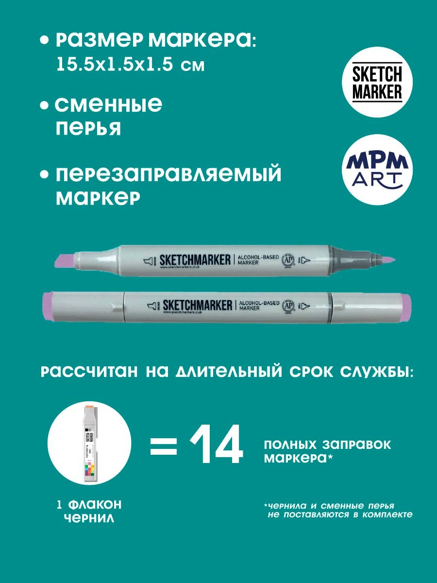 Двусторонний заправляемый маркер SKETCHMARKER на спиртовой основе для скетчинга, цвет: V24 Сиреневый