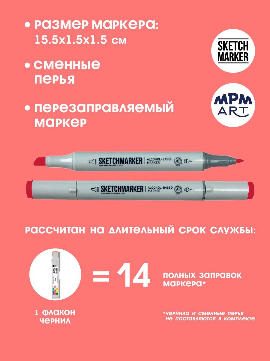 Двусторонний заправляемый маркер SKETCHMARKER на спиртовой основе для скетчинга, цвет: O23 коралловый
