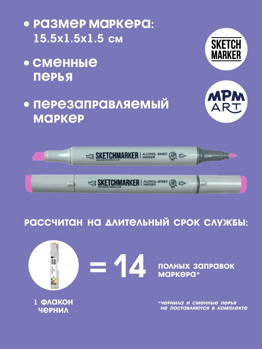 Двусторонний заправляемый маркер SKETCHMARKER на спиртовой основе для скетчинга, цвет: V24 Сиреневый