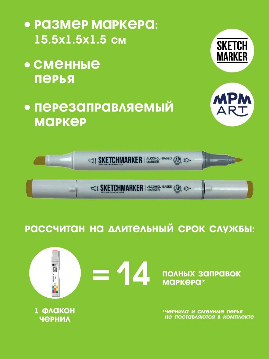 СохранитьДвусторонний заправляемый маркер SKETCHMARKER на спиртовой основе для скетчинга, цвет: Y111 Камыш интересное: