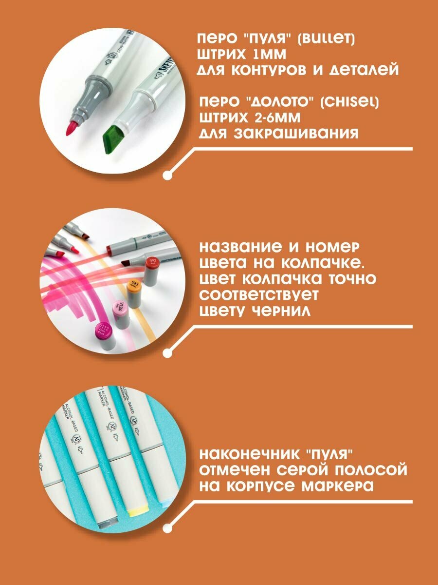 СохранитьДвусторонний заправляемый маркер SKETCHMARKER на спиртовой основе для скетчинга, цвет: O24 Чайная Роза интересное: