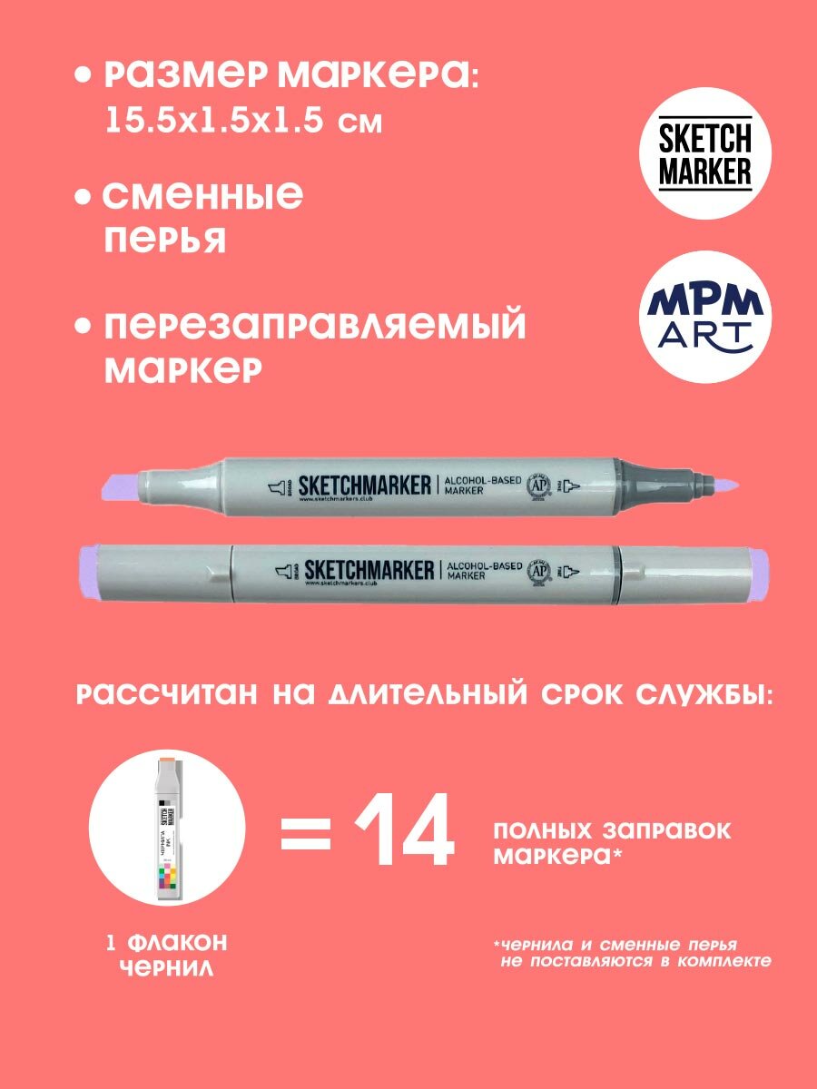 СохранитьДвусторонний заправляемый маркер SKETCHMARKER на спиртовой основе для скетчинга, цвет: V23 фиалковый интересное: