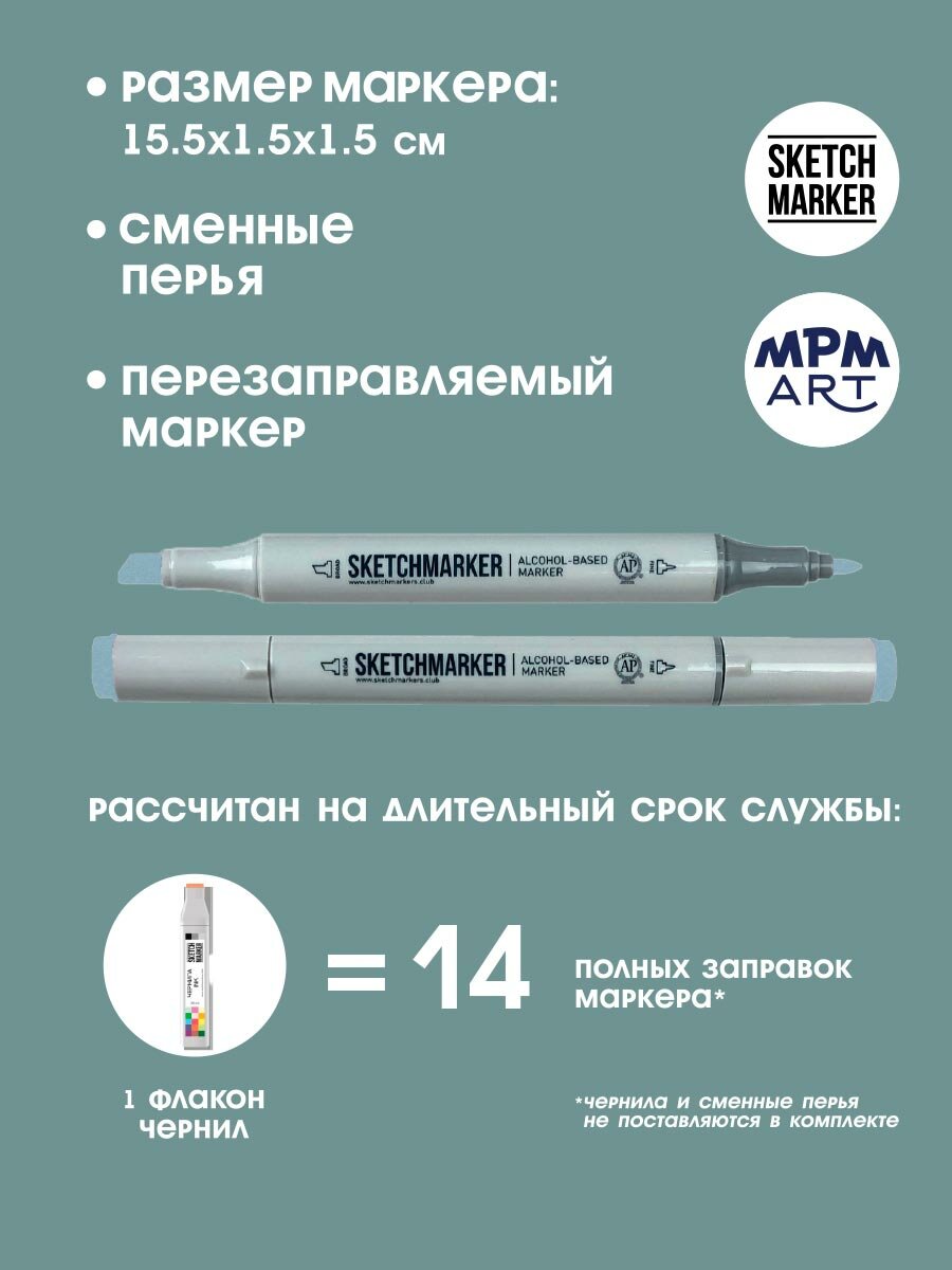 Двусторонний заправляемый маркер SKETCHMARKER на спиртовой основе для скетчинга, цвет: B22 Морозный нефрит