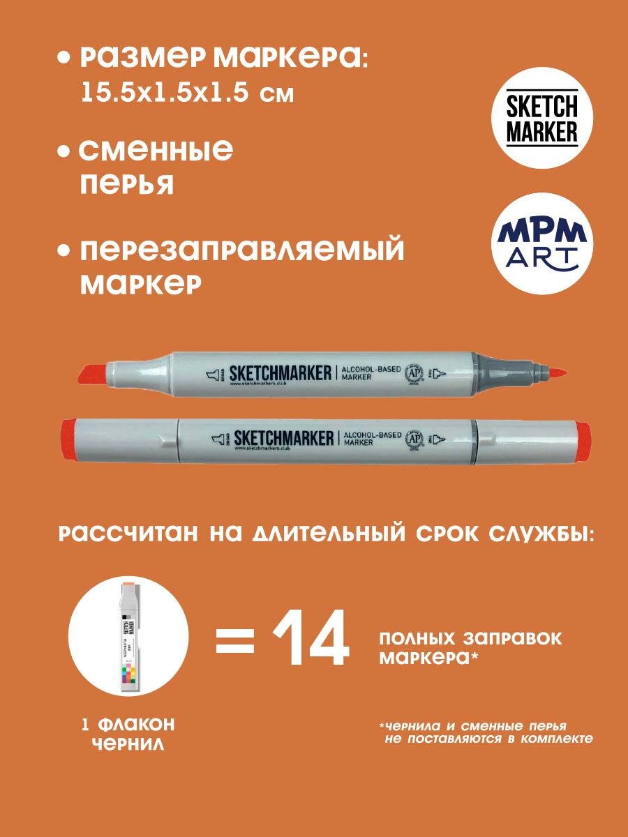 Двусторонний заправляемый маркер SKETCHMARKER на спиртовой основе для скетчинга, цвет: O21 Оранжево-красный