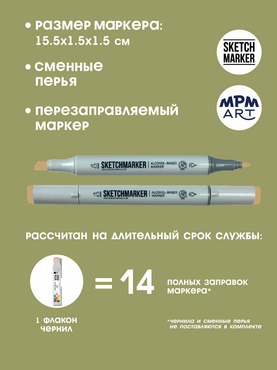 СохранитьДвусторонний заправляемый маркер SKETCHMARKER на спиртовой основе для скетчинга, цвет: BR82 Бежевый кирпич интересное: