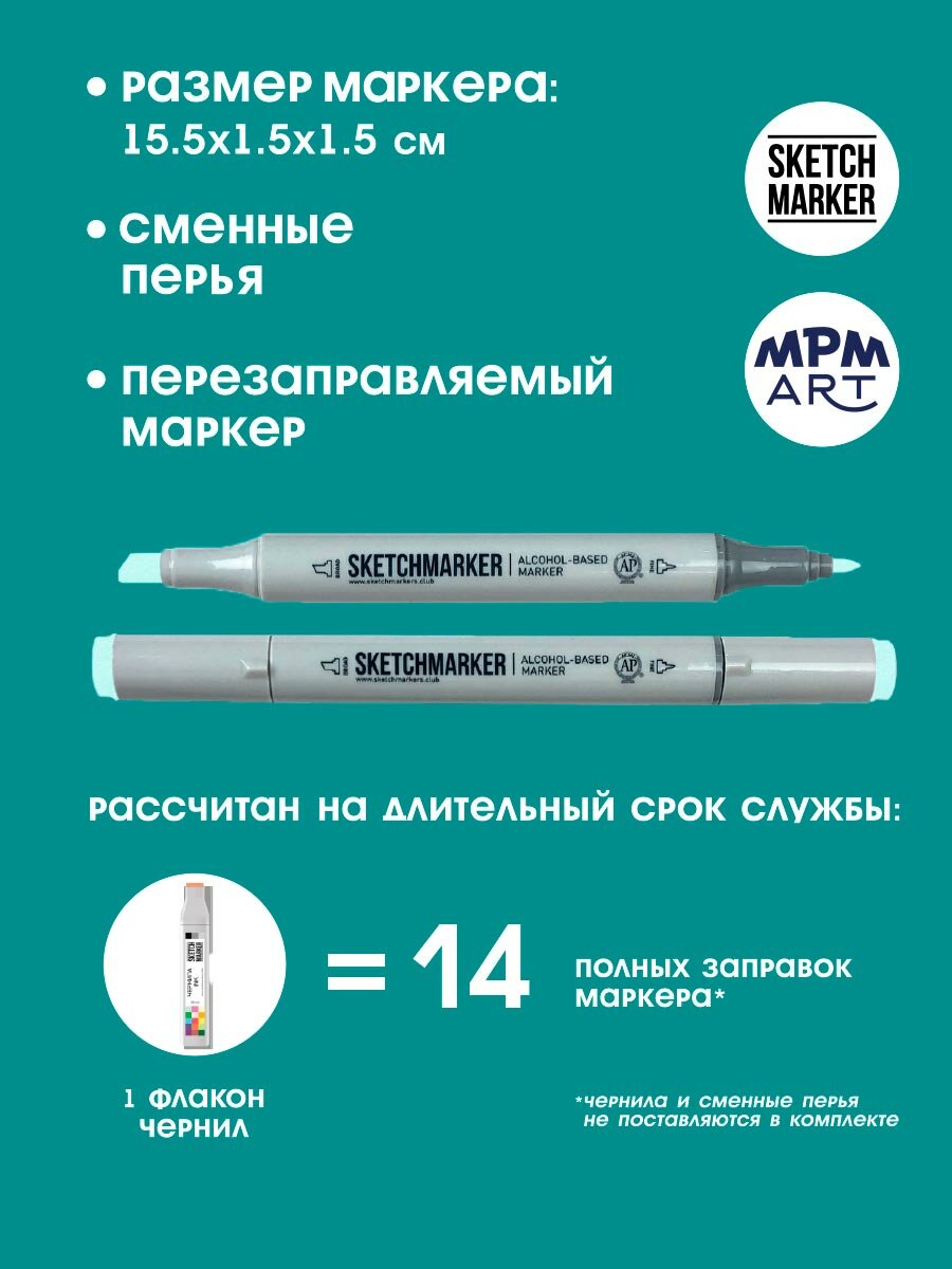 Двусторонний заправляемый маркер SKETCHMARKER на спиртовой основе для скетчинга, цвет: G152 Бирюзово-зеленый