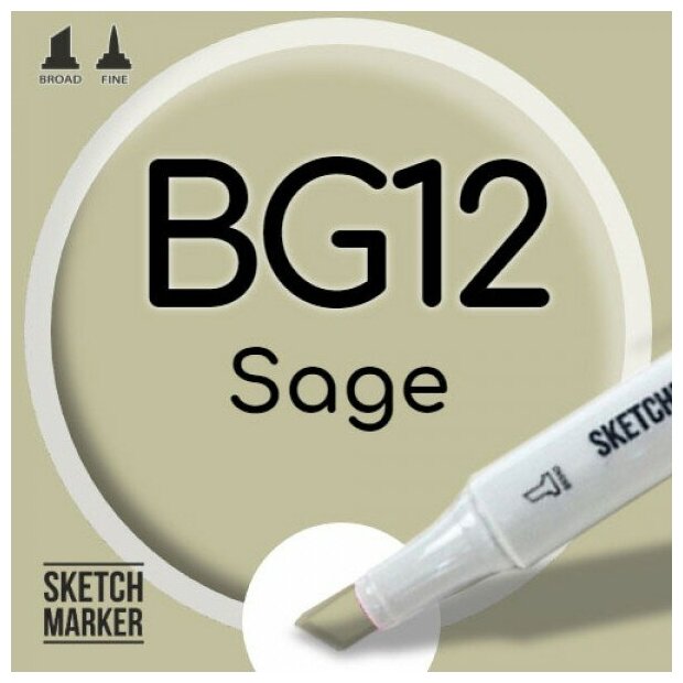 Купить Двусторонний заправляемый маркер SKETCHMARKER на спиртовой основе для скетчинга, цвет: BG12 Шалфей