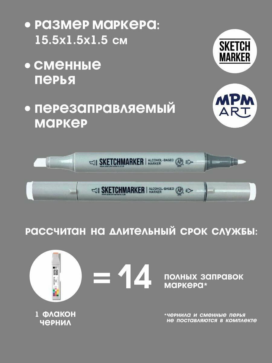 СохранитьДвусторонний заправляемый маркер SKETCHMARKER на спиртовой основе для скетчинга, цвет: CG8 Прохладный серый 8 интересное: