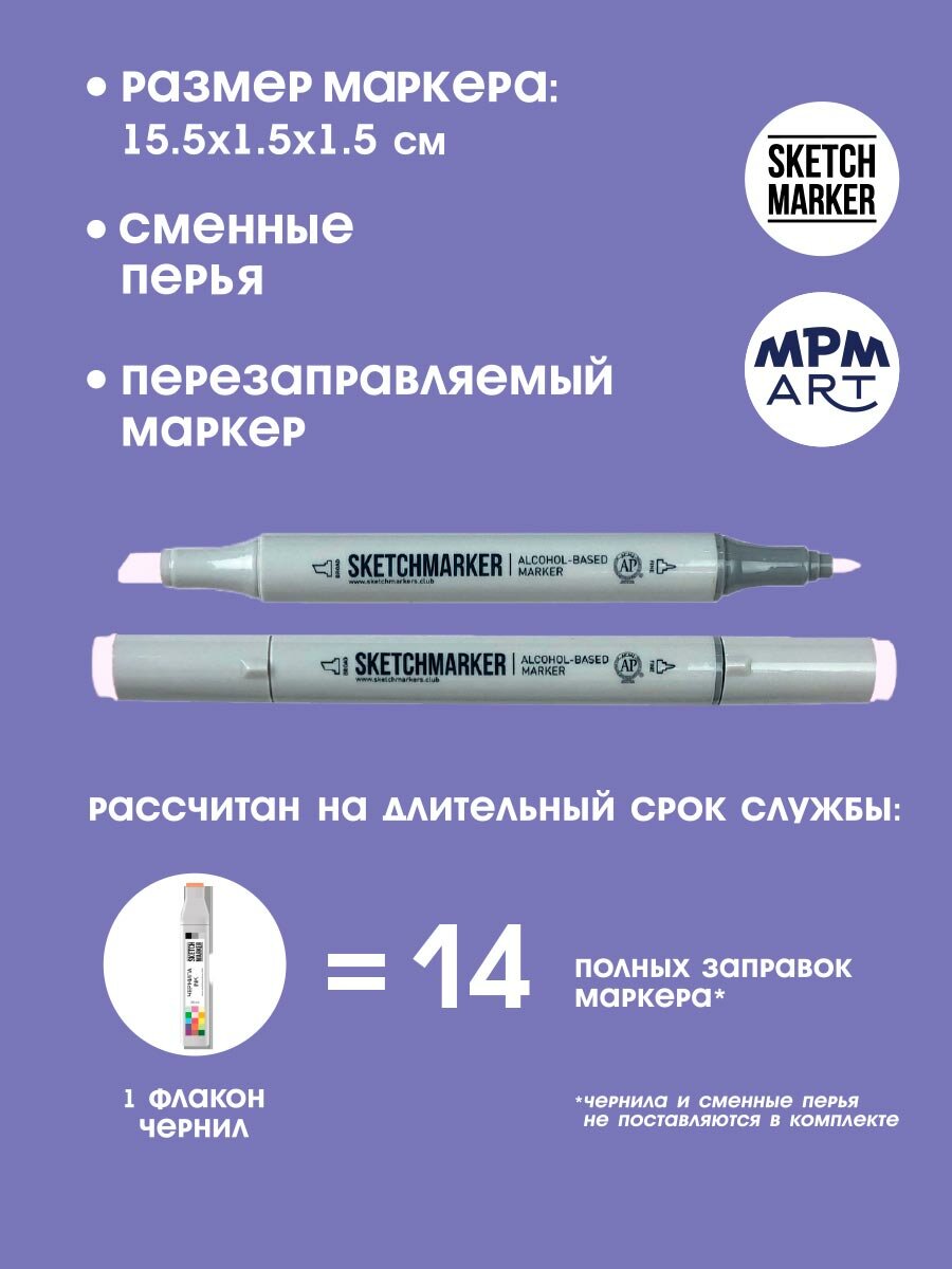 Двусторонний заправляемый маркер SKETCHMARKER на спиртовой основе для скетчинга, цвет: V24 Сиреневый